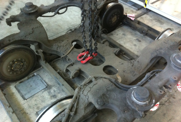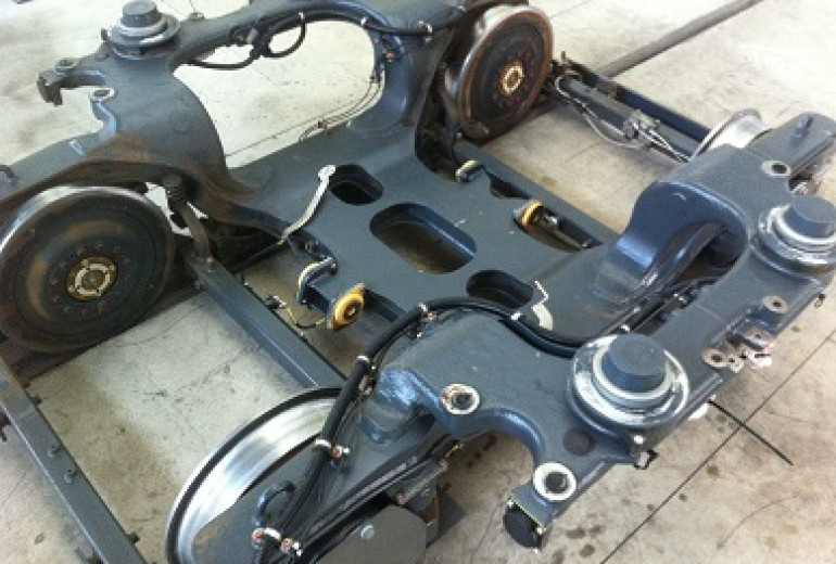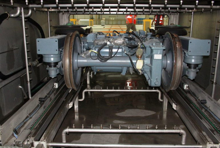 Los bogies son piezas muy grandes y pesadas por lo que la máquina debe ser potente y robusta, el sistema de proyección oscilante se desplaza hacia delante y hacia atrás a lo largo de la cabina de limpieza para proporcionar la máxima cobertura de los componentes. El bogie se introduce en la lavadora sin ninguna limpieza previa, una hora después está limpio.